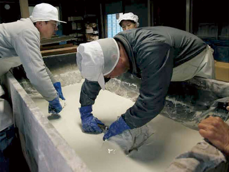 九州福岡県朝倉市に本社のある廣久葛本舗の十代目高木 久助社長は、鹿児島県大隅半島にある工場で、近隣の約200人の「ほりこさん」と呼ばれる人たちが山から掘り出してくる葛根から、今日なお昔ながらのたいへんな手間と時間をかけた製造技術を駆使して、原料から製品までの一貫生産を行っています。他所ではなくなったほんものの本葛が、ここに現存しています。