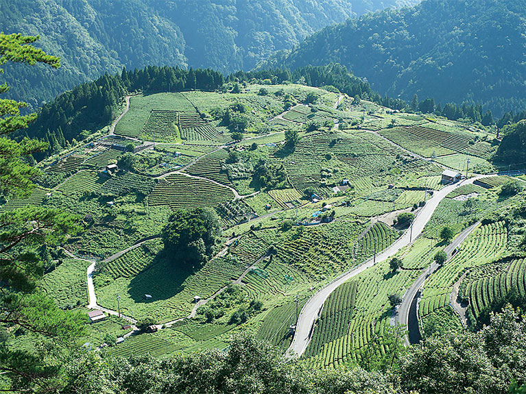 自然茶師と名乗る、健一自然農園の伊川 健一代表は、標高400〜600mの冷涼な気候の大和高原に点在する茶畑、いずれも周囲を森で囲まれた理想的な茶畑において、農薬、化学肥料、有機肥料を使わない自然栽培を営んでいます。肥料的なものは自然木の落葉、茶樹の落葉程度です。30ヶ所の茶畑の総面積は11haもあります。アルバイト、研修生を含め、10名のスタッフが働いています。それらの畑のほとんどはもともと耕作放棄された茶園で、もし伊川 健一さんが預からなければ山に戻っていってしまうはずのものでした。