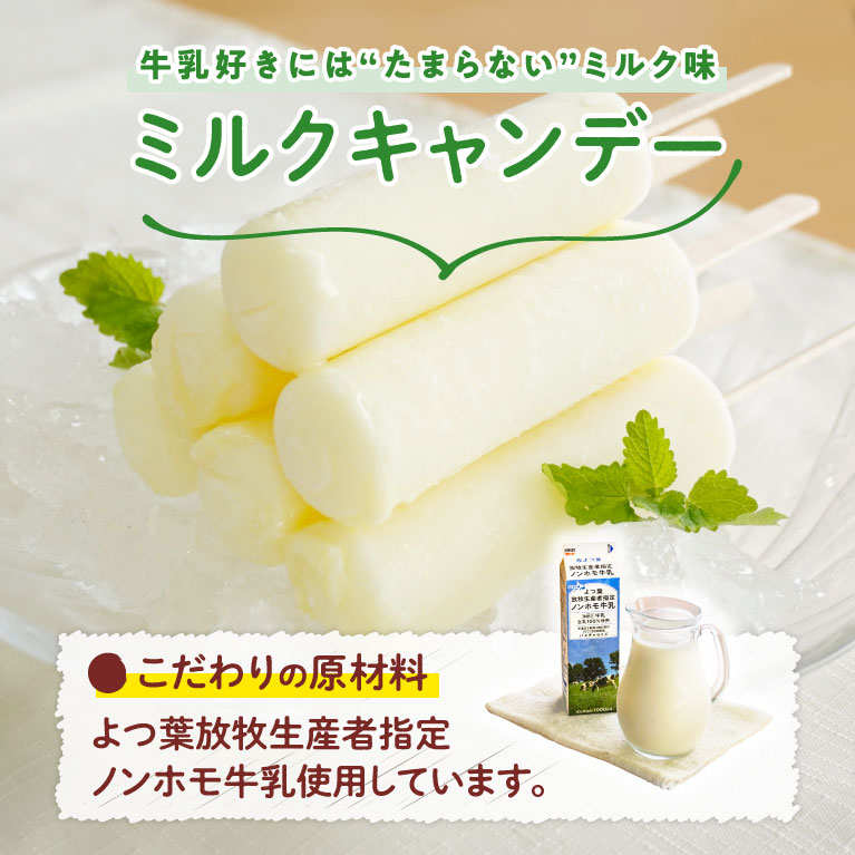 後味すっきり、プレーンなミルク味。よつ葉ノンホモ牛乳を使用。素材のよさが生きています。