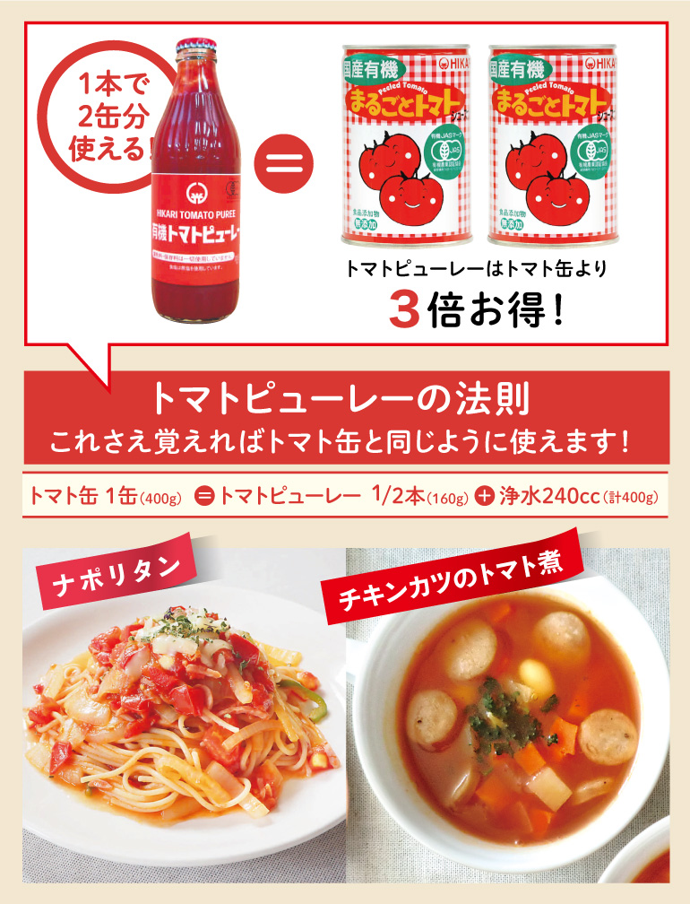 有機トマトが持つ自然の甘味を生かした、トマト本来の味を楽しめるトマトピューレーです。