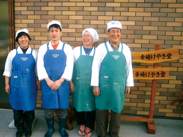 幸崎さんは以前、神社の門前で餅を売っておられました。お父さんはケヤキ製品が趣味で、それも門前で商っておられました。その趣味が臼と杵に活かされて、おいしい餅作りにつながっています。私との出会いはさらに安全、安心の原材料にこだわること、食品添加物など薬品を使わないことにつながりました。