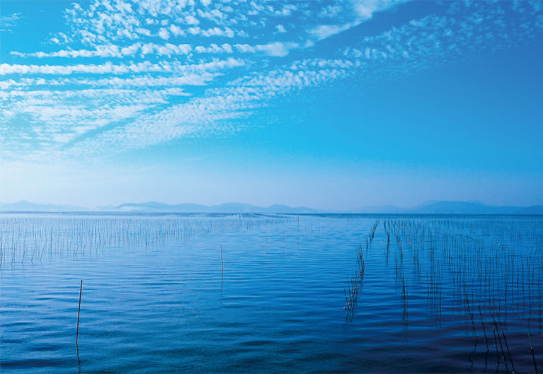 有明海産ののりが優れているのは、ミネラルなどの栄養が豊富な干潟に育っているからです。近年、東京湾、伊勢湾、瀬戸内海などでは、国による下水処理の規制が進み、真水に近い排水が流されるようになっています。のりは本来、山からのミネラル豊富な海水で育つもので、かつてはおいしいのりの産地だったこれらの地域では、のりの品質が低下しています。