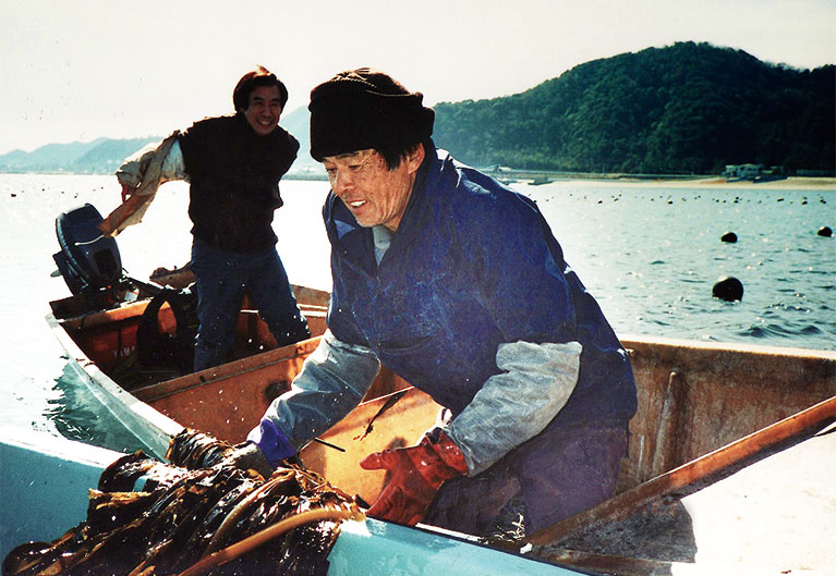| ワカメ漁中の三ッ石勇美さん(96年当時) |