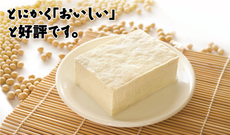 木綿豆腐は昔なつかしい味です。豆腐作りに素人だった農家の手造りとは思えません。関連製品の豆乳、甘酒豆乳(甘酒と豆乳の混合ドリンク)、ドライおから(白鷹町内障がい者通所作業施設と提携)なども製造しています。
