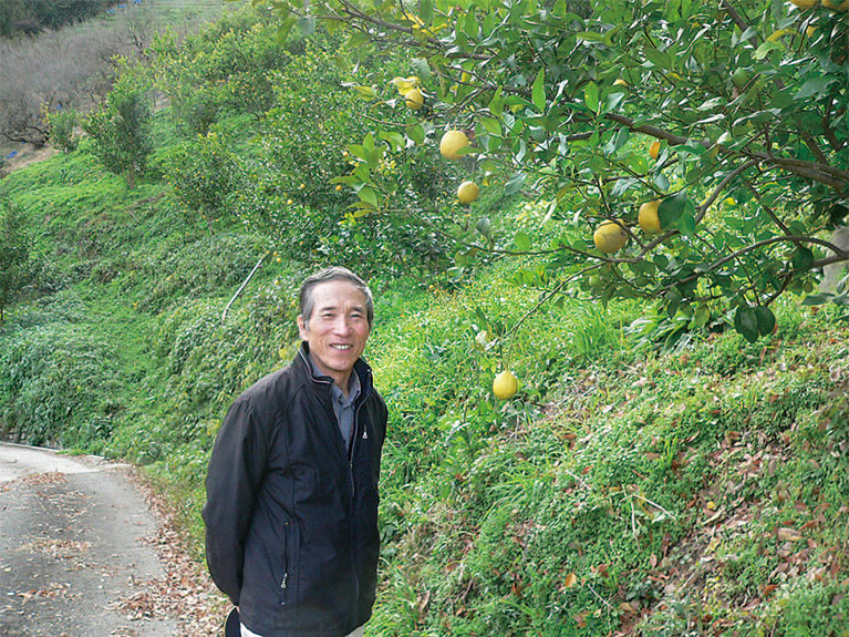 和歌山県みなべ町にある三尾農園の三尾 保利さんは、約3町歩の圃場で農薬・肥料を使わず、梅を中心に、ネーブル、ぽんかん、レモンなどの柑橘類を自然栽培しています。梅は高知県室戸岬の海洋深層水から造ったミネラル豊かな塩を使って梅干やねり梅にしています。