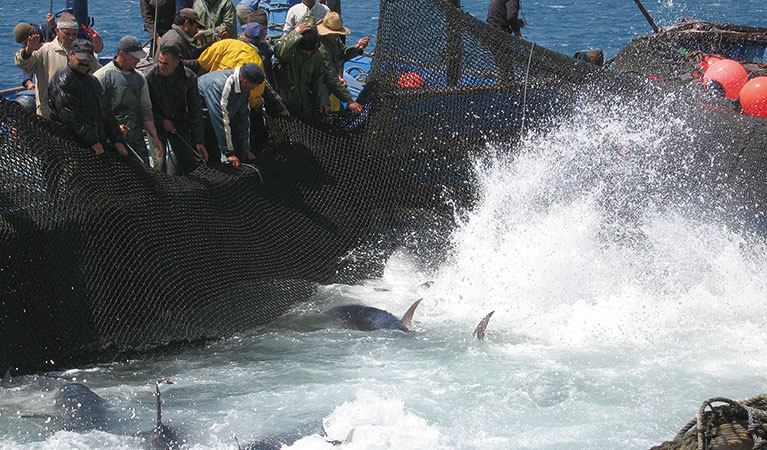 マグロの食文化の認知から世界的に水産物の消費が増大した結果、現在、世界で一般的に行われている漁法は、一網打尽に漁獲する「巻網漁」になっています。これでは未成魚の個体数の減少に直結し、マグロ資源の枯渇を招いてしまいます。