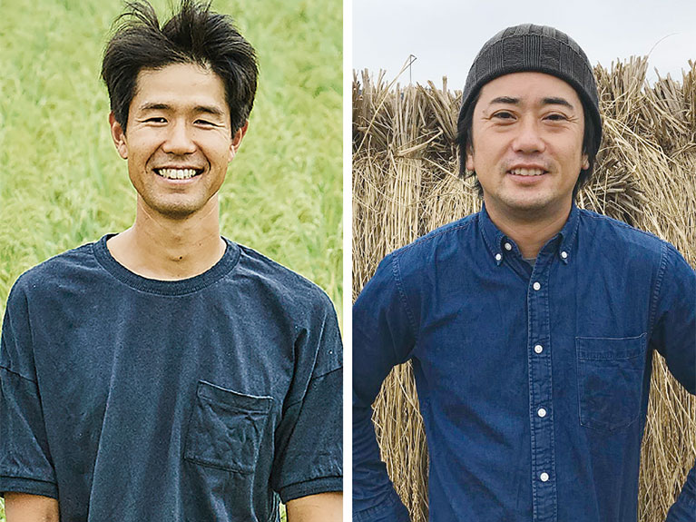| 2024年10月2週号 農業福島園の福島 光志代表㊧と原料米生産者の石松 健一郎さん |