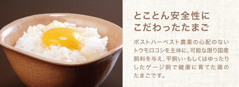 ポストハーベストの心配のないトウモロコシを主体に、可能な限り国産飼料を与え、平飼い・もしくはゆったりしたケージ飼いで健康に育てた鶏のたまごです。どの生産者も飼料添加物・動物医薬品を使っていません。